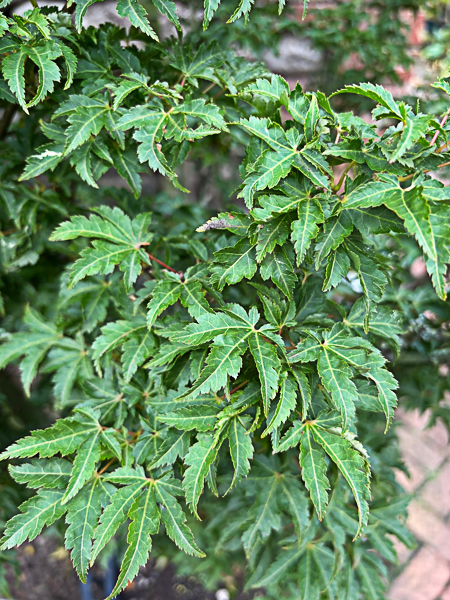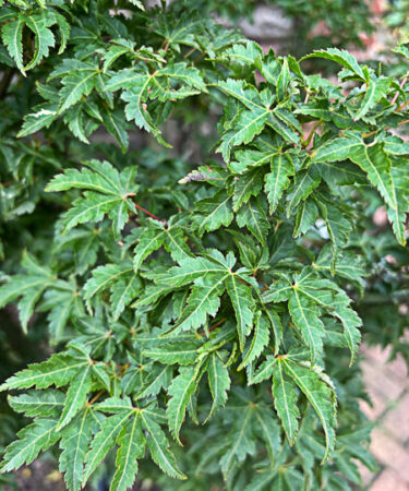 Acer palmatum ‘Shishi-gashira’ is an unusual variety of Japanese maple with deep green crinkled palmate leaves that are packed closely together, giving the tree a slightly bonsai look. Lovely soft yellow to golden brown in autumn. Vase shaped habit. Slow growing. Ht 8ft (2.4m). Peaty soil, sun or part shade.