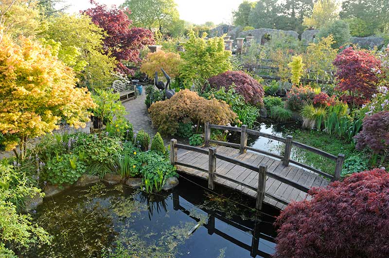 Today, horticulturalists travel from all over the world to explore this secret garden and to discover the vast selection  of plants, the majority of which are propagated on-site. Peter and his team specialise in rare and unusual shrubs, perennials, and climbers, Japanese acers, old fashioned roses, and slow growing and dwarf conifers. For many of these varieties they are the country’s only suppliers as listed in the RHS Bible, The Plantfinder.