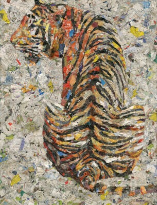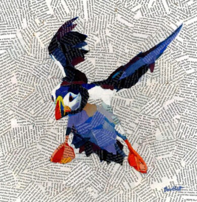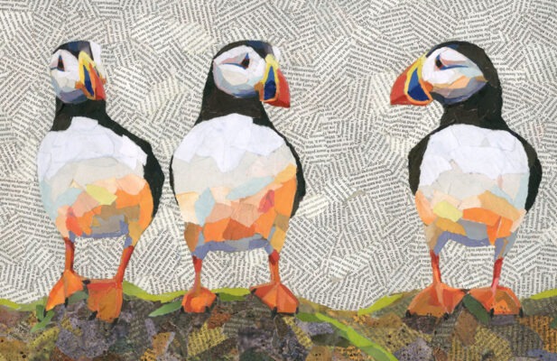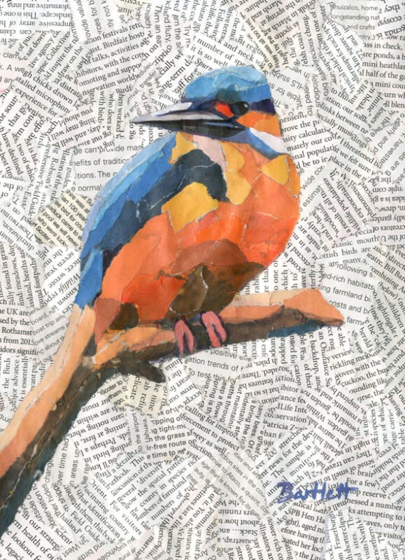 Collage and papier mâché together with acrylic paints and other materials to create stunning mixed media pieces inspired by the natural world.