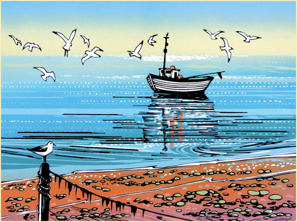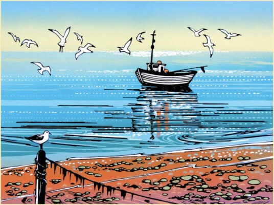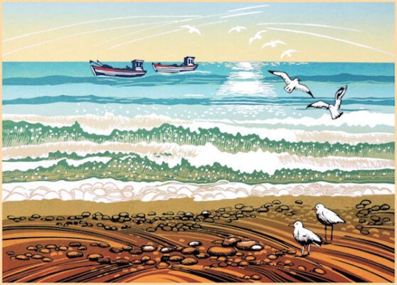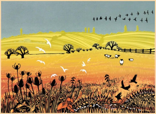 Rob’s linocuts are hand-printed on an Albion press built by Harry Rochat printers’ engineers in the London Borough of Barnet.
