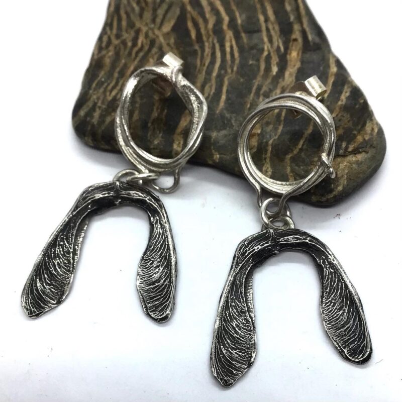 Xuella Arnold creates distinctive jewellery in silver and bronze, combining skilled craftsmanship with a quietly playful sensibility. Her work is characterised by finely detailed, miniature elements—delicate watering cans, tiny bees, and other subtle motifs—each carefully made and full of character.