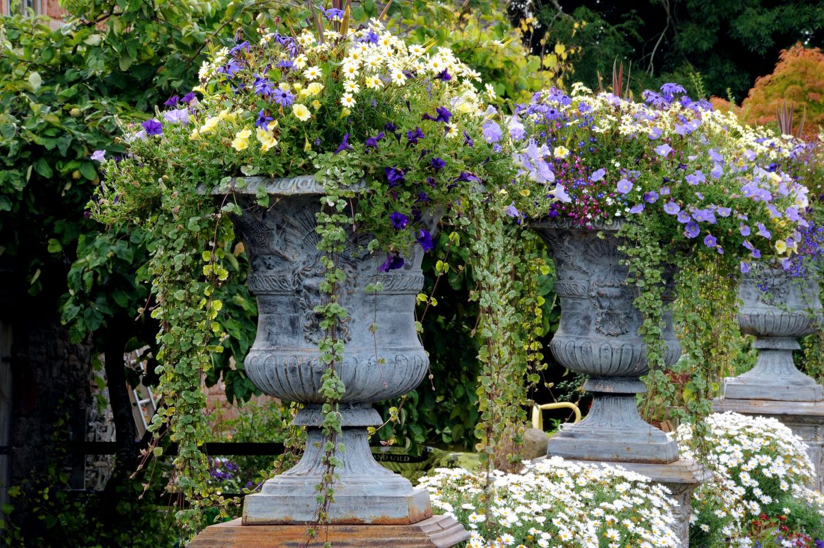 Garden pots, planters and urns can make a great difference to your garden, adding height and colour, they can be placed within your borders, at the side of steps, lining the patio and as a welcome sight at the door in fact anywhere that takes your fancy! You can grow fruit trees in them, vegetables, salad crops and even potatoes as well as a huge variety of shrubs, smaller trees – Acer’s in particular look great in ceramic pots, perennials and of course, bedding plants.