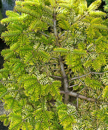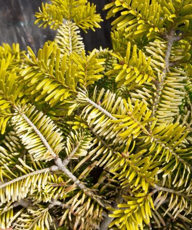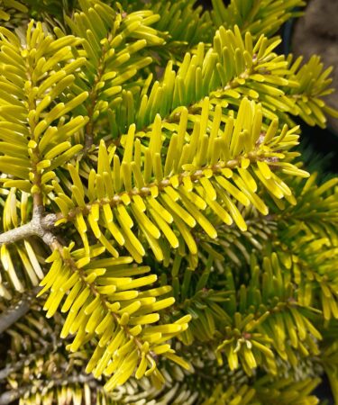 Abies nord. ‘Golden Spreader’ is a lovely golden dwarf conifer. Very suitable for rock garden or trough. Forms slow growing dense bun shape. Growth 1″ per year. Prefers part shade. In ten years 30cm (11in) Moist, well drained, acid to neutral soil.