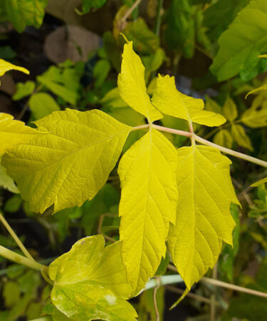 A relatively quick growing, large shrub or small tree. Golden yellow leaves. Yellow flowers in the spring months. Ht 15ft (4.5m). Any reasonable soil. Sunny position will grow in part shade but leaves become more green. Not suitable for exposed sites.