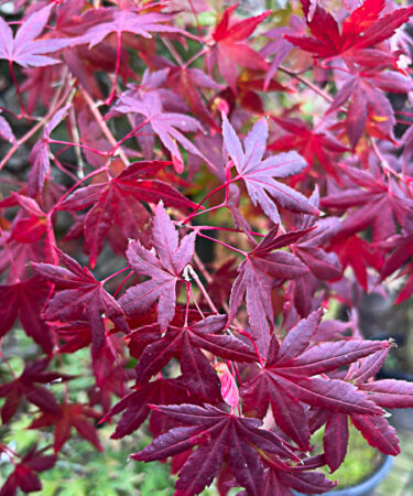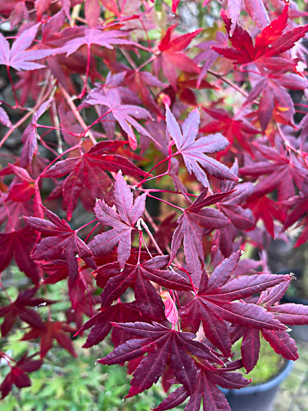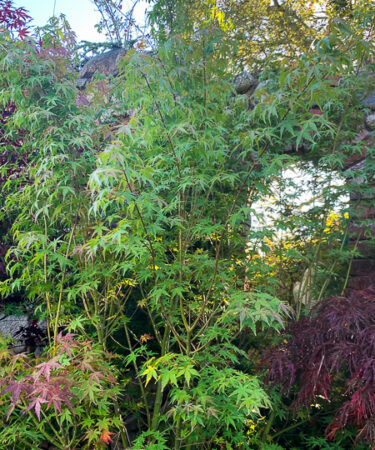 Attractive small tree. Low rounded umbrella shaped head. Bronze tinted green maple foliage. Rich autumn colouring. Ht 10-12ft (3-3.5m). Peaty soil, sun or part shade.