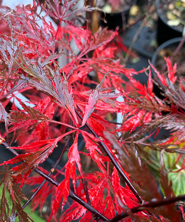 Acer palmatum dissectum ‘Firecracker’ is a beautiful plant with stricking red-purple foliage and bright red stems. Ht; 1.75m (5.8ft). Full sun/part shade, moist, well drained soil.