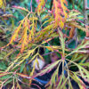 Acer palmatum ‘Peaches And Cream’ is a compact shrub, as wide as high. Leaves densely arranged along the twigs, variegated greenish pink and white. Yellow/orange autumn colour. Ht and spread 6-8ft (1.8-2.4m). Acid to neutral soil.
