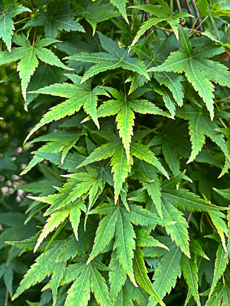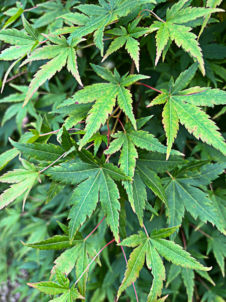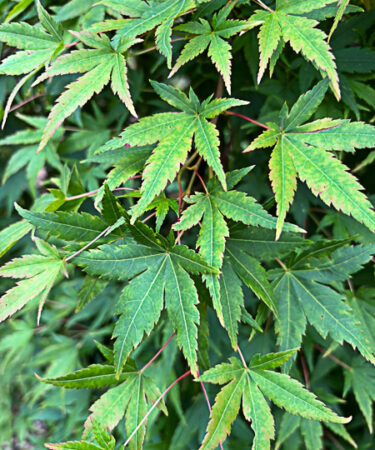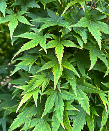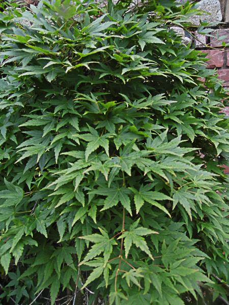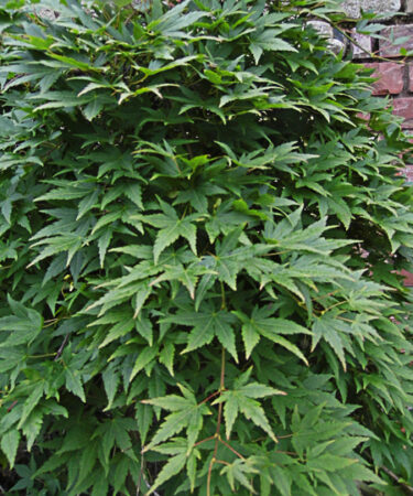 Acer palmatum ‘Ryusen’ is a weeping Japanese Maple. Strong, pendulous branches with green foliage, turning a beautiful red in the Autumn. Ht; 3m. Moist, well drained soil and partial shade.