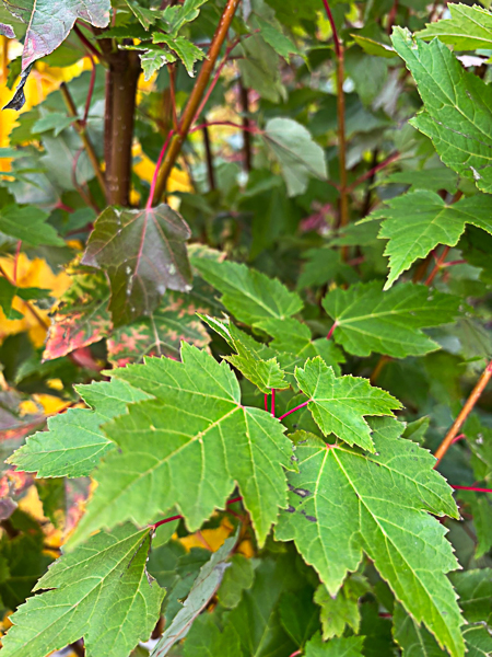 Acer rubrum ‘Brandywine’ is one of the best and most reliable of all the ‘rubrums’ for the Uk. Intense autumn colours- superb red and purples last a long time and start early. Oval in shape, ideal for restricted spaces. Ht upto 6m. Highly recommended. Grow in rich moist soil in sun or light shade.