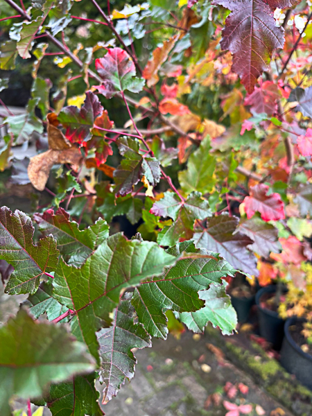 Acer ‘Merlot Magic’® is a selection of the Tartarian maple with an excellent upright symmetrical habit, perfect for smaller spaces and street trees. Attractive purple/red emerging lobed leaves that turn purple-flushed deep bronzy-green in summer. Conspicuous small flowers in May are scented and attractive to bees. In the autumn the orange-red seed keys and autumn foliage add further interest to this neat garden and landscape tree. Selected for its unusual purple-red emergent spring foliage. Well drained soil. They thrive in sun but are equally happy with partial shade. A sheltered area away from strong winds is preferred. Ht and Spr (after 10 years) : 4m x 2.5m