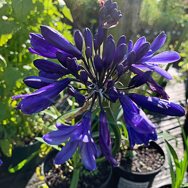 Compact clumps of strap like leaves. Large spherical heads of intense blue flowers Jul-Sept. Ht 50cm x 50cm. Sheltered, sunny spot, in moist but well-drained soil. Needs winter protection in coldest localities. Suitable for growing in pots.