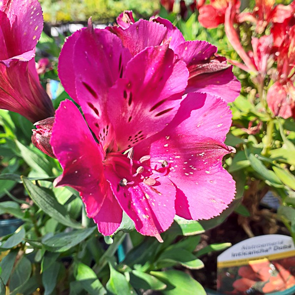 A beautiful compact variety producing an abundance of rich raspberry pink flowers which cover the lance shaped foliage from June right through to the first frosts in November.Ht 30cm. This Peruvian Lily is ideal for front of the border or alternatively planted in patio pots and containers. Prefers well drained soil and a sunny, sheltered location. Likes a bit of protection in cold Winters, it will survive temperatures down to around minus 5c.