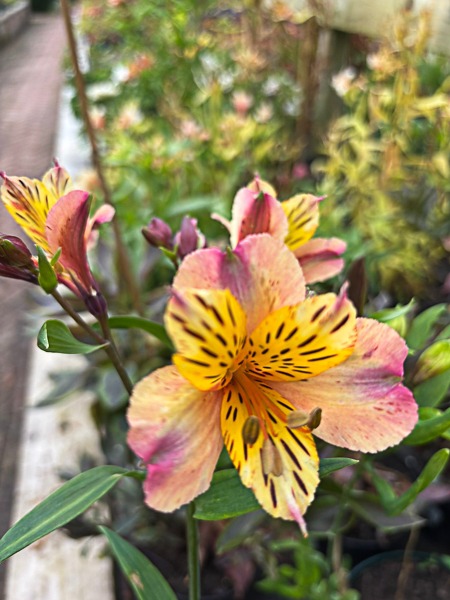 A lovely peruvian lily. Very free flowering. Flowers in shades of yellow/ apricot with dark spotting. Good for cutting. Flws jun-oct. Ht 70cm x spr 30cm. Fertile, moist, well drained soil. Sun or part shade. Mulch well in the winter.
