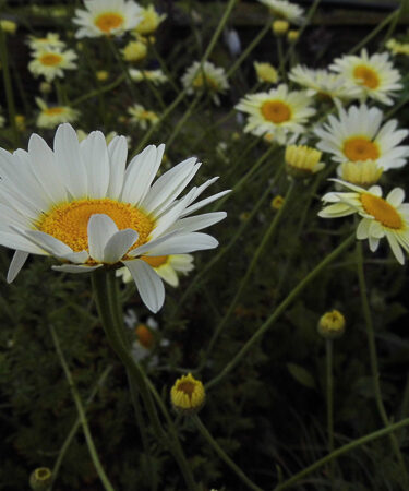 Anthemis tinctoria ‘Sauce Hollandaise’ has low mounds of grey green fern like foliage. Masses of creamy white flws. Flws: Jun/Sept. Ht 2-3ft. Well drained soil. Sunny position.