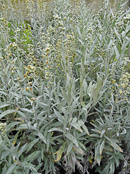 Attractive large, jagged silver-grey foliage forming a loose mound. Small white flws. Flws: Aug-Sept. Ht 18″. Well drained soil. Full sun. AGM