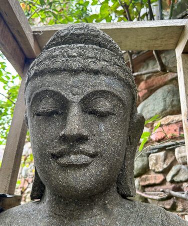 A genuine piece of sculpture imported from Asia and hand carved by skilled craftsmen from natural stone. A unique piece of art for any home or garden. Ht 200cm.