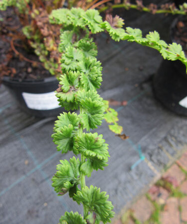 ‘Spiral Staircase Lady Fern’. An unusual variety of Lady Fern. Long narrow fronds are produced with the pinnae reduced to rounded lobes. Ht 1-2ft. AGM. Moist humus rich site. Ideal for woodland locations and shady pond margins.