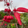 Evergreen, bushy, dense shrub. Stout, green shoots. Large glossy, dark green leaves, heavily mottled yellow. Small, purplish flws, May. Followed by bright red berries. Female. Sun, well drained soil. Ht 5-6ft.