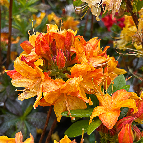 Deciduous shrub. Bears large orange flws, May. Ht 5ft (1.5m). Sprd 4ft (1.2m). Prefers sun or partial shade. Requires acid/peaty soil.