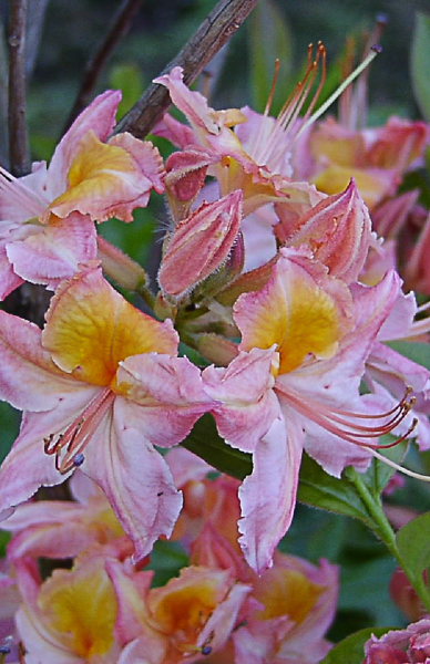 Swamp azaleas are a unique species of deciduous azalea of North American origin. These azaleas offer later flowering and extremely fragrant flowers. Medium-sized, coral pink flowers with golden orange flare open in late May and continue flowering for about 3 weeks. Strong fragrance. Deciduous leaves are smaller than on other deciduous azaleas. Ht 5-6ft. Acid soil. Sunny position.