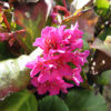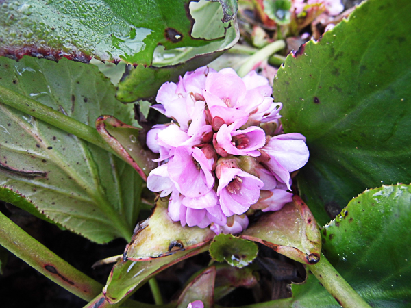 Evergreen perennial. Large leathery leaves. Makes ideal ground cover. Racemes of attractive deep salmon pink flws. Flws: Mar-Apr. Any reasonable soil. Any site except extreme shade.