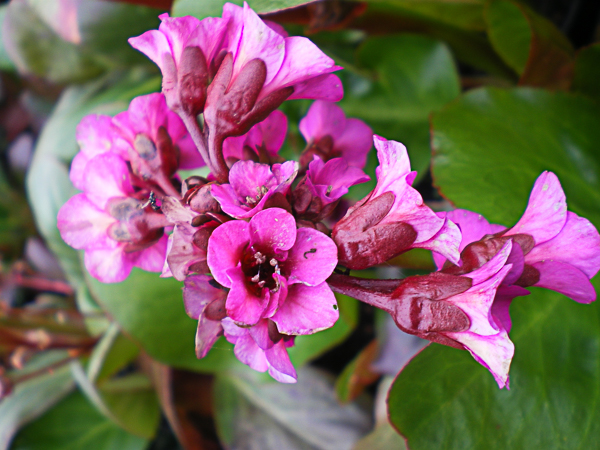 Evergreen perennial. Large leathery leaves. Makes ideal ground cover. Racemes of attractive pink flws on strong stems. Flws: May-Jun. Ht 40cm. Any reasonable soil. Any site except extreme shade.