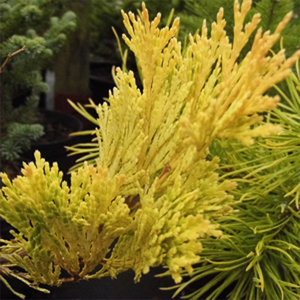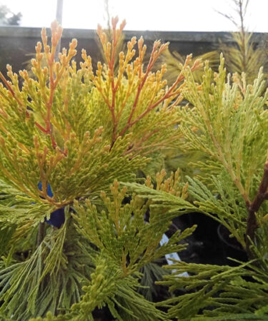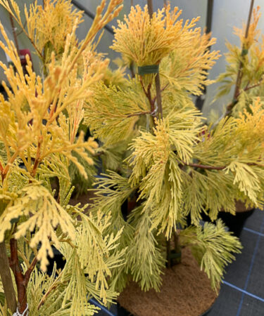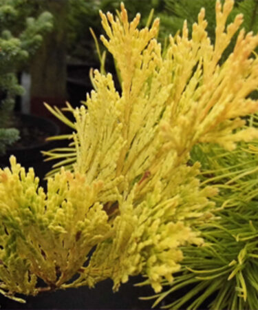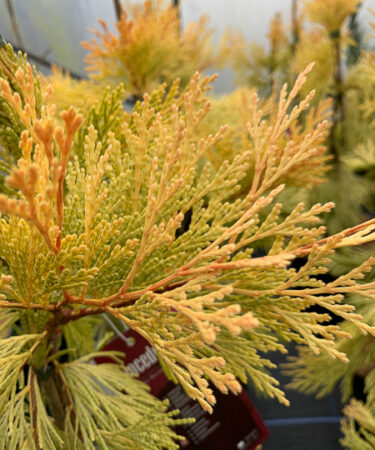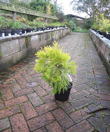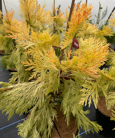 Probably the most spectacular introduction of recent years. A column of almost orange gold in the winter later yellow green. Growth approx 120cm (4ft) in 10 years. Limited numbers.