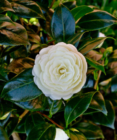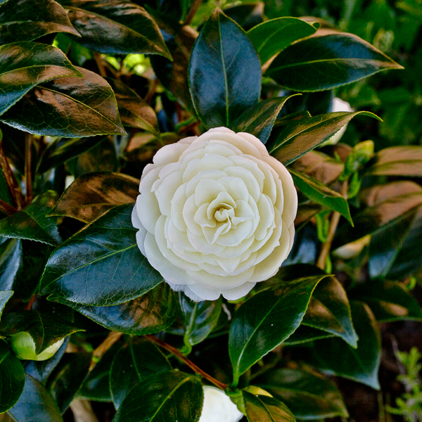 A compact, upright, evergreen shrub with oval, glossy, dark green leaves and double, white to pale yellow flowers in early to mid-spring. Ht 2m. Well drained, lime free soil.