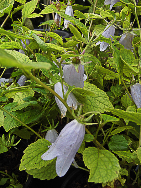 Rosettes of long stalkless leaves and upright stems carrying a profusion of large violet-blue flowers throughout the summer. Ht 1ft. Sun or part shade.