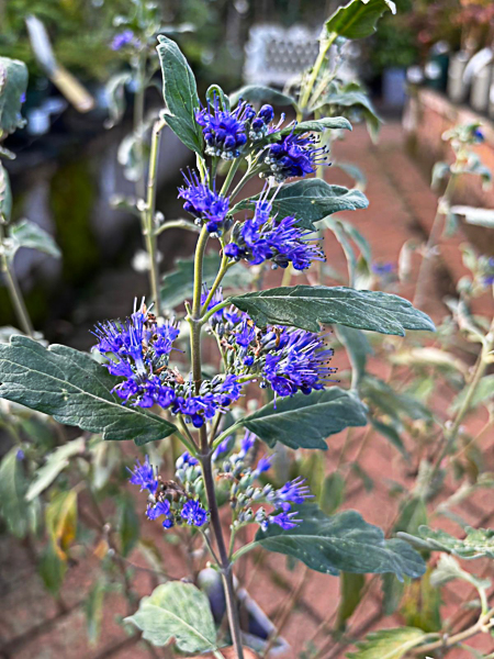 An attractive late flowering shrub. Dark blue flowers, Jul-Sept. Dark green foliage. Deciduous. Ht 2-3ft (60-90cm). Well-drained soil in full sun. Prune plants hard each spring for best flowering the following year. Flowers attractive to pollinators!