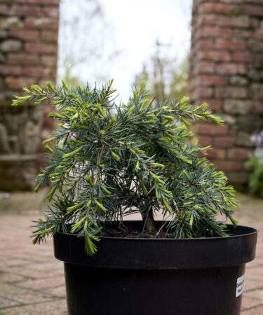A beautiful cultivar,dense steel blue needles on a dense compact prostrate spreading form with graceful pendant tips,forms a lovely specimen for the rock garden or trough. 2.5ft in 10 years.