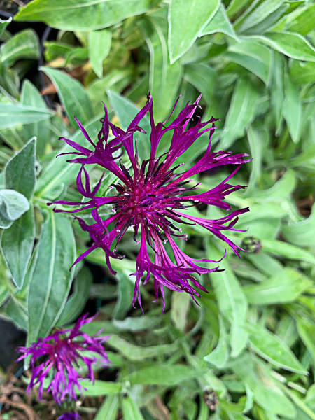 A striking, mounding perennial with silver-green, lance-shaped foliage and deep-purple flowers. Blooms in late spring to early summer. Approx 45-50cm (18-20″). Well drained, moist soil.