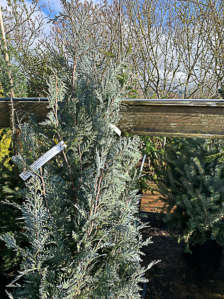 An excellent cypress. Forming a compact dense blue grey narrow cone. Growth rate 6ft in ten years. Very hardy.