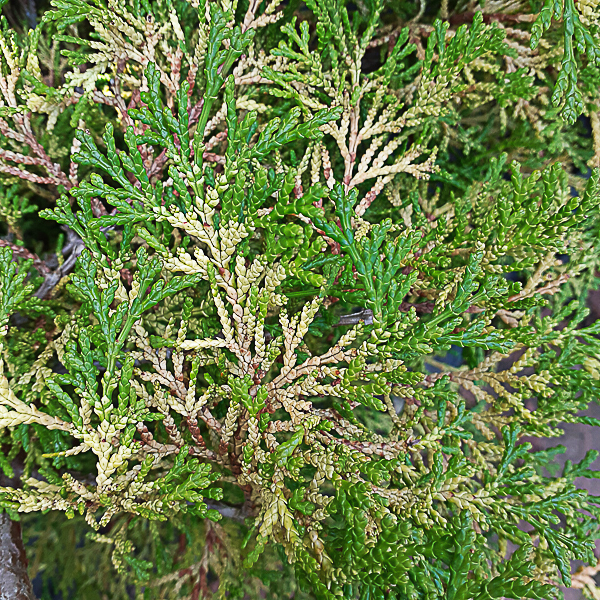 A dwarf form, suitable for pot or rockery. Dense, small, low spreading plant with good golden colour. Bronzing in winter.