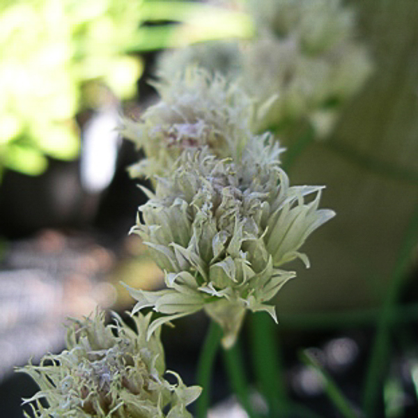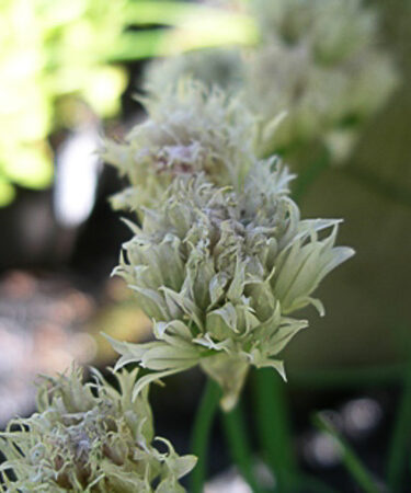 Clumps of pungent grassy foliage tasting of spring onion. Dense terminal heads of white flowers in summer. Well drained soil, sunny site.