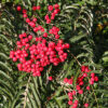 Rounded bushy habit. Evergreen finely divided rich green glossy leaves. Blooms profusely in spring. Pink buds open to pink flushed flowers. Ideal for borders. Also excellent pot specimen. Ht 3-4ft. AGM. Well drained soil, sheltered position, sun/shade.