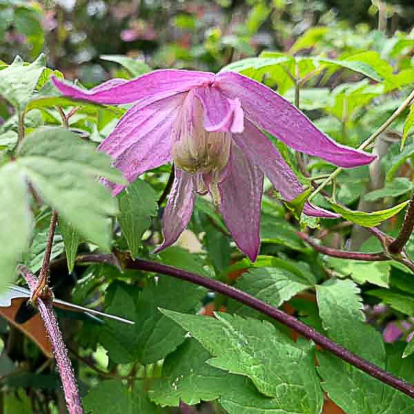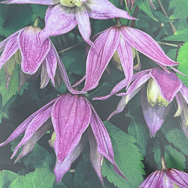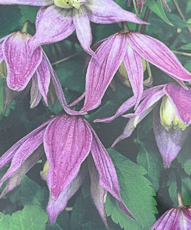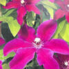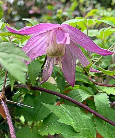 Petunia-mauve flowers, fading to paler pink. very free flowering, July-Oct. Compact climber. Ht 1.5m-2.5m in 10 years.