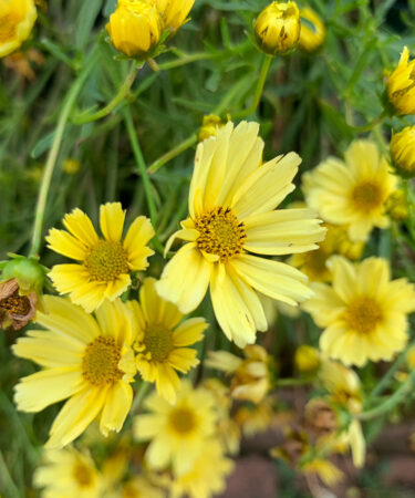 A new coreopsis. An improved moonbeam producing larger, deeper yellow flws with greater vigour. Flws: Jun-Sept. Clumps of narrow, linear leaves, better resistant to mildew. Ht 20″ x spr 35″. Well drained, fertile soil. Sunny position.