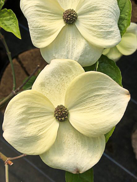 A lovely small tree. ‘cornus florida x cornus nuttallii’. Habit taller than C.florida and denser than C.nuttallii. Large white bracts. Flws: May-Jun. Good red autumn colouring. AGM. Fertile, humus rich acid soil, sun part shade.