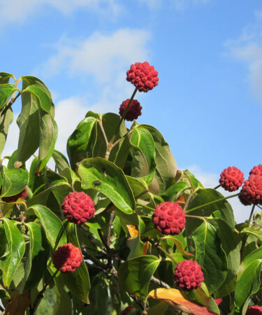 Elegant large shrub. Numerous large creamy lemon flowers in June. Rich autumn colour in shades of red. Ht 6-8ft in 10 years. A choice and rare specimen. Not suitable for poor, shallow, chalk soils. Needs deep, humus rich soil, sun or part shade.