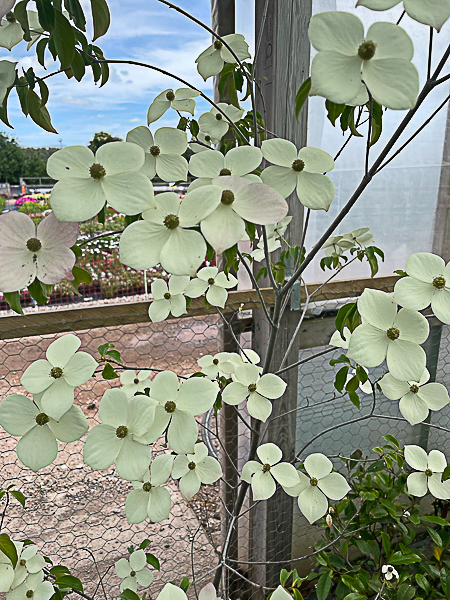 Cornus Norman Haddon is a large, semi-evergreen Flowering Dogwood suited to sunny position. The dark green leaves turn red in autumn and will remain on the branches in mild climates. The flower bracts are creamy white in June, turning pink as they mature through late summer. Cornus Norman Hadden will produce the best flower display following a long, hot summer. Dogwood Norman Haddon also produces pink strawberry-like fruits.inal height and spread of 5 x 5 metres in 20 years