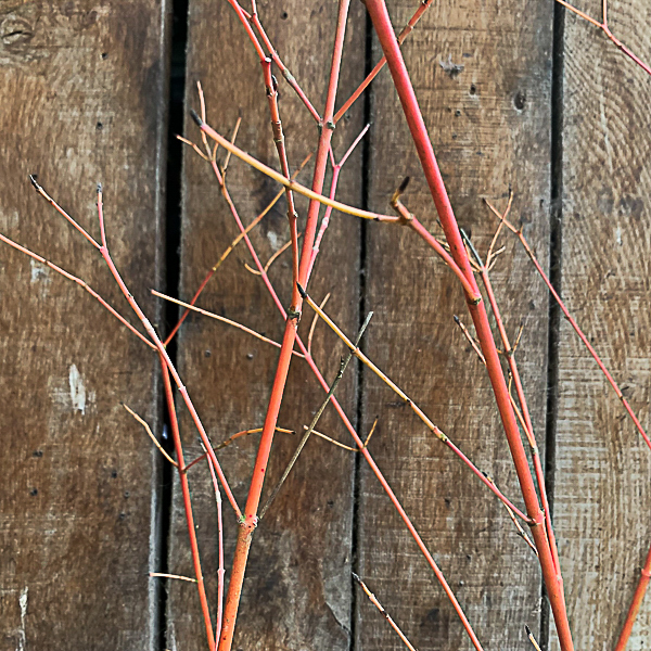 ‘Dogwood’. A colourful compact small shrub. Ovate green foliage. Rich autumn colouring. Orange-yellow stems, red in winter. Flws Jun followed by black fruit. Ht 3-4ft. Thrives in a moist site.