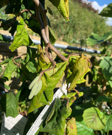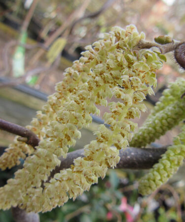 Deciduous, bushy shrub. Curiously twisted shoots and broad, sharply toothed, mid-green leaves. Pendent, pale yellow catkins. Very slow growing. Ht 10ft. Full sun and well-drained soil. Excellent as a specimen shrub.