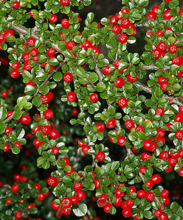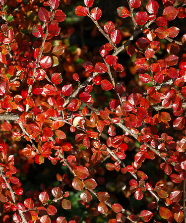 Dwarf, spreading shrub with shiny, dark-green foliage which matures to rich, ruby-red in Autumn. Flws bloom in May with dark red petals. Orange-red fruits from Sept-Oct. Ht; 0.5-1m. Prefers well drained soil & a sunny spot. Wind-hardy and good in coastal areas. Desiduous.