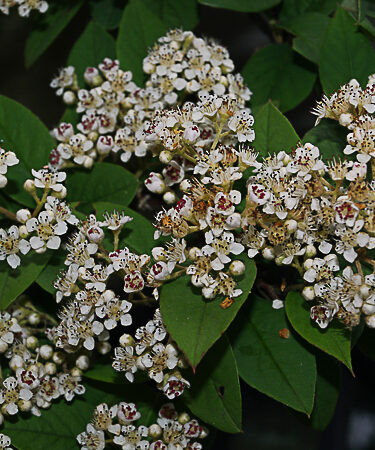 Beautiful shrub with year-round interest. Shiny, yellowish-green foliage on arched branches. White flws bloom July-Aug and orange red fruit ripens Oct/Nov. Ht; to 5m. Prefers well drained soil & a sunny spot. Wind-hardy and good in coastal areas. Evergreen.