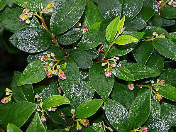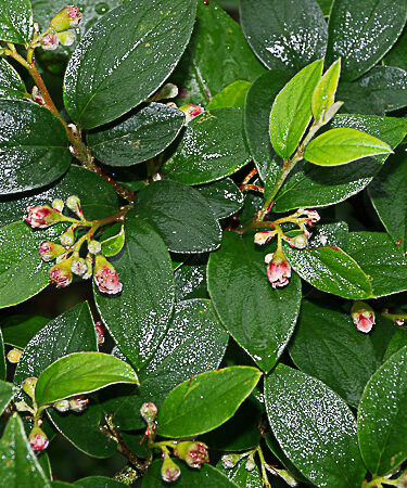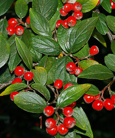 Glossy foliage on arched, spreading branches which bear pink flowers from June – July.Deciduous or semi-evergreen. Orange-red fruit is ripe from Oct – Nov. Ht; 2-3m. Prefers well drained soil & a sunny spot. Wind-hardy and good in coastal areas.