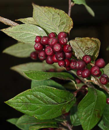Dark green foliage on spreading branches. Blooms May – June and rich red fruit is ripe from Sept- Oct. Deciduous. Ht; 2.5-4m. Prefers well drained soil & a sunny spot. Wind-hardy and good in coastal areas.