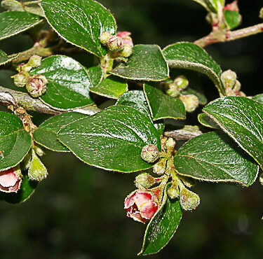 A somewhat dense and deciduous shrub with dark red petals with pink or off white border blooming in June-July. Orange-red fruit ripe in September – October. Very Hardy. Ht 1-2m