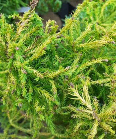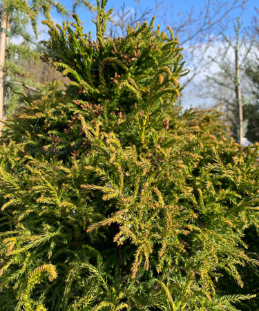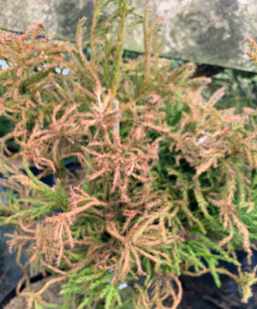 A dwarf form of Cryptomeria Spiralis. Forms a low bush of twisted spiralling branches and needles. 2-3ft in ten years.