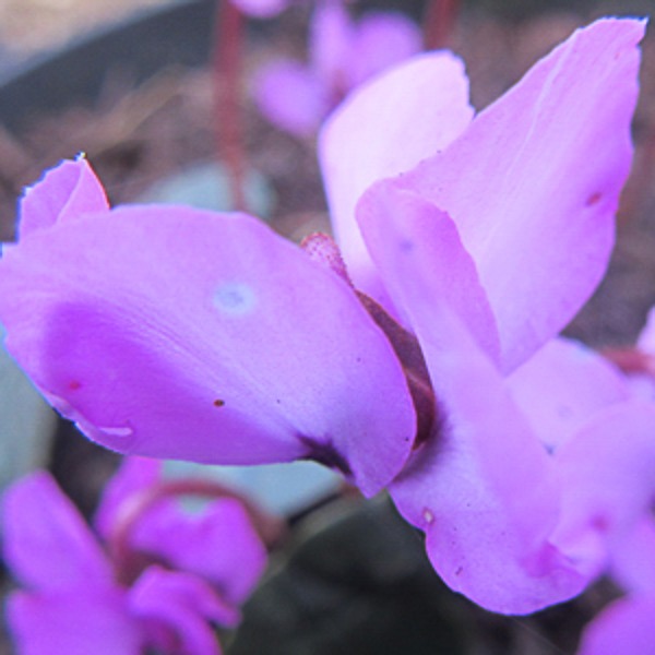 A hardy species, rounded mid-green marbled foliage, dark red beneath broad reflexed petals pink/carmine or white flws, Dec/Mar. Ht 3″. Well drained, humus rich soil, shade.